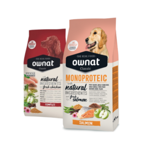 Pienso Ownat para perro: alimentación natural elaborada en España. Gamas Classic, Just, Care, Prime e Hypoallergenic con ingredientes frescos de proximidad.