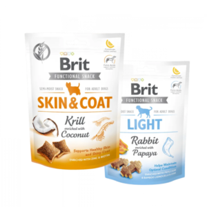 Nuestros snacks funcionales para perros van más allá de un simple premio: cada pieza aporta un beneficio concreto para las articulaciones, la piel, la digestión o la higiene dental de tu compañero. Trabajamos principalmente con Brit Care, marca checa reconocida por formular golosinas funcionales perro con ingredientes de alta biodisponibilidad y sin cereales innecesarios.